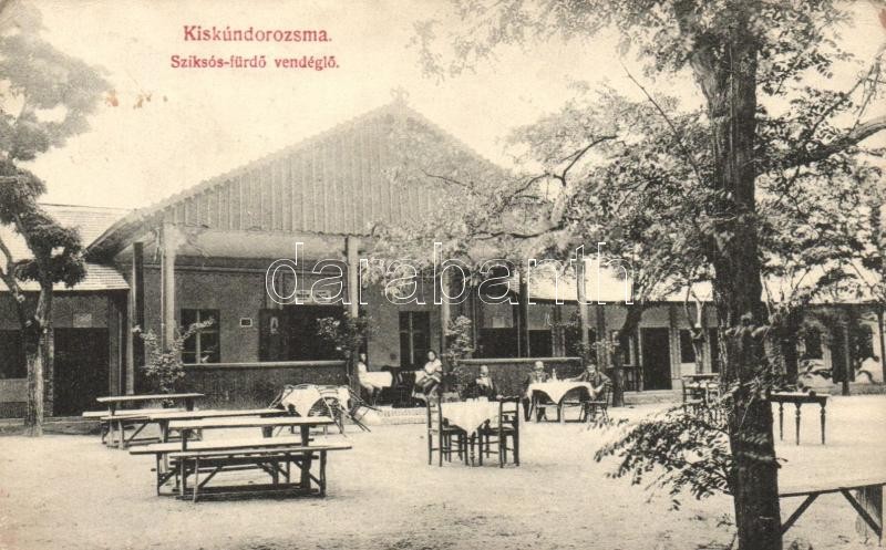 Beschreibung: Kiskundorozsma, Sziksós fürdő vendéglő, étterem, kert. Grünwald Hermann kiadása (kopott sarkak / worn corners)