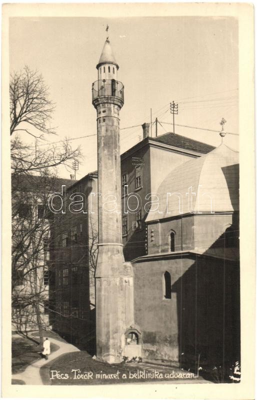 Pécs, Török minaret a klinika udvarán. photo https://www.darabanth.com/de/319-Fernauktion/319.0/Ansichtskarten/Ungarn~2500005/Pecs-Torok-minaret-a-klinika-udvaran-photo~II1721122