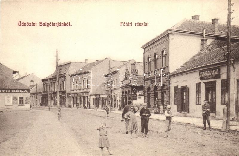 Beschreibung: Salgótarján, Fő tér, Czirbesz Samu vendéglője, Friedler Ármin, Tóth Béla és Biheller Jakab üzlete, Bútor raktár