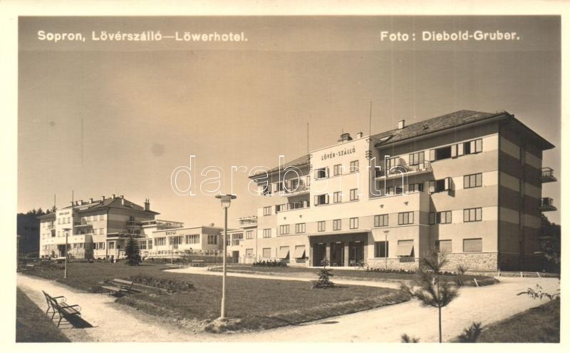 Sopron, Lövérszálló. Foto Diebold-Gruber / Löwer Hotel https://www.darabanth.com/de/319-Fernauktion/319.0/Ansichtskarten/Ungarn~2500005/Sopron-Loverszallo-Foto-Diebold-Gruber-Lower-Hotel~II1763606