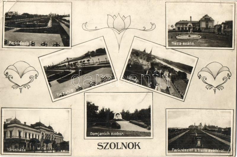 Szolnok, mozaiklap: park, Tisza híd, Tisza szálloda, Damjanich-szobor,... https://www.darabanth.com/de/319-Fernauktion/319.0/Ansichtskarten/Ungarn~2500005/Szolnok-mozaiklap-park-Tisza-hid-Tisza-szalloda-Damjanich-szobor-Varoshaza-fa~II1719940