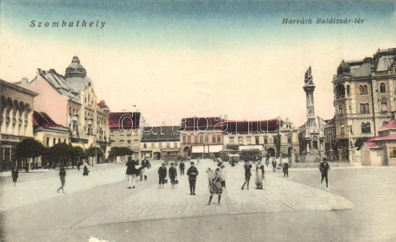 Beschreibung: Szombathely, Horváth Boldizsár tér, villamos, üzletek, Sabaria nyomda. Grosz D. kiadása (EK)