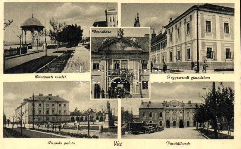 Vác, Városháza, Kegyesrendi gimnázium, vasútállomás, Püspöki palota https://www.darabanth.com/de/319-Fernauktion/319.0/Ansichtskarten/Ungarn~2500005/Vac-Varoshaza-Kegyesrendi-gimnazium-vasutallomas-Puspoki-palota~II1747548