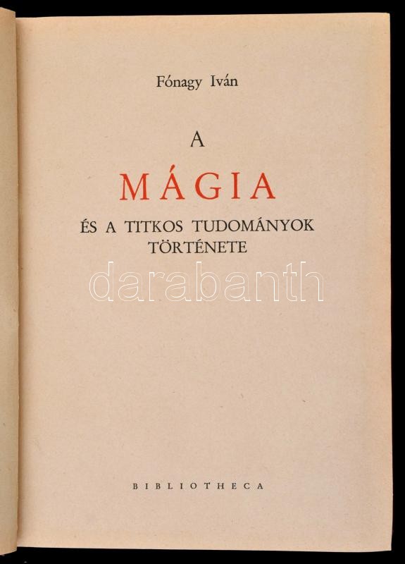 Fónagy Iván: A mágia és a titkos tudományok története. Bp., 1943, Bibl... https://www.darabanth.com/de/319-Fernauktion/319.0/Bucher/Bucher-Andere-kuriositaten~1500016/Fonagy-Ivan-A-magia-es-a-titkos-tudomanyok-tortenete-Bp-1943-Bibliotheca-Atkotott-eg~II1741152