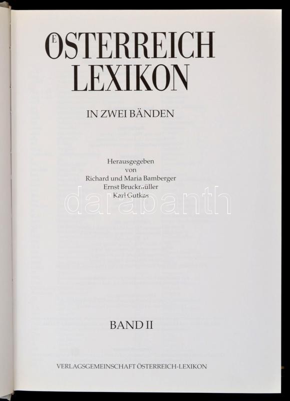 Österreich Lexikon in zwei Bänden. Harausgeben von Bamberger, Bruckmüller, Gutkas. Wien, 1995, Verlagsgemeinschaft Österreich-Lexikon. Kiadói egészvászon-kötés, kiadói papír védőborítóval, kiadói kartontokban, jó állapotban / Linen binding, in good conditon