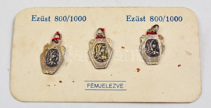 Beschreibung: Ezüst(Ag) Mária medál, 3 db, jelzett, 1,5x1 cm, papírlapra rögzítve