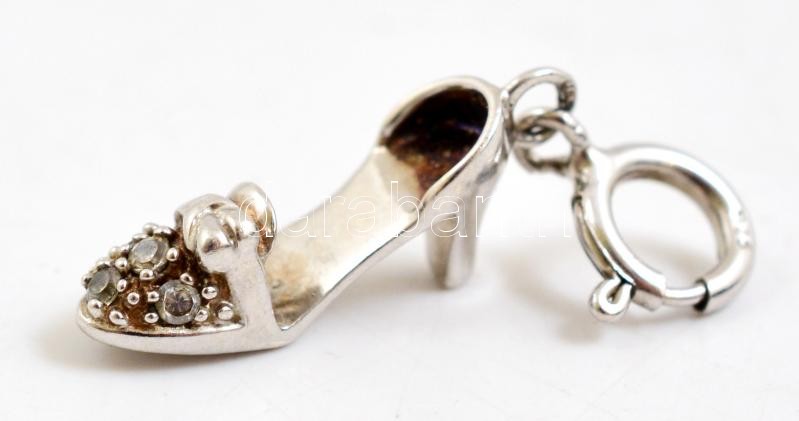 Beschreibung: Ezüst(Ag) apró kövekkel díszített cipellő, zsuzsu karkötőhöz, jelzett, h: 1,5 cm, bruttó: 1,5 g