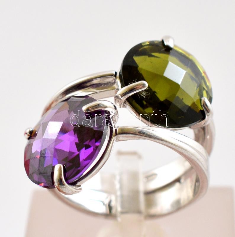 Beschreibung: Ezüst(Ag) gyűrű szintetikus kövekkel, jelzett, méret: 53, bruttó: 7,9 g