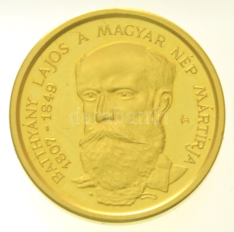 Hungary 1990. "Lajos Batthyany the martyr of the Hungarian Nation" Au medallion (7.2g/0.900/20mm) sign.: László Horváth, Lajos Nagy C:UNC,AU(PP)