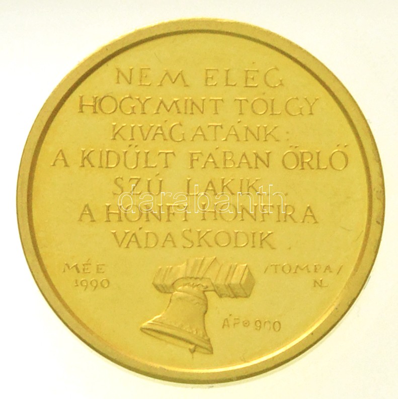 1990. "Batthyány Lajos A Magyar Nép Mártírja 1807-1849 - MÉE" Au emlékérem (7.2g/0.900/20mm) szignó: Horváth László, Nagy Lajos T:1,1-(PP)