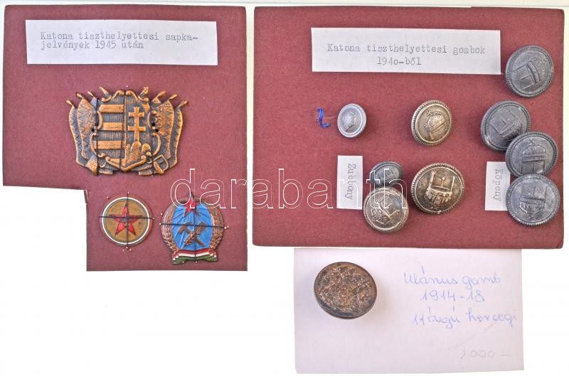 ~1940-1950. 17db-os vegyes militária tétel, benne jelvények, sapkajelvények, gombok + 1934. "XXV. Országos Katolikus Nagygyűlés" réz jelvény (34mm) T:2
