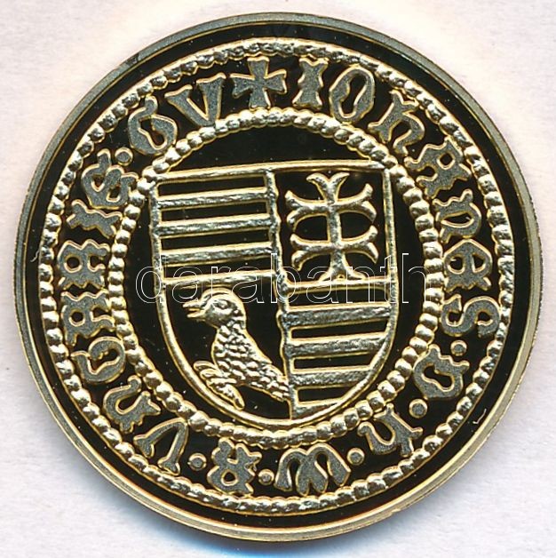 Beschreibung: DN "Magyar aranypénzek utánveretben - Hunyadi János kormányzói aranyforint" aranyozott Ag emlékérem tanúsítvánnyal (5,5g/0.999/25mm) T:PP