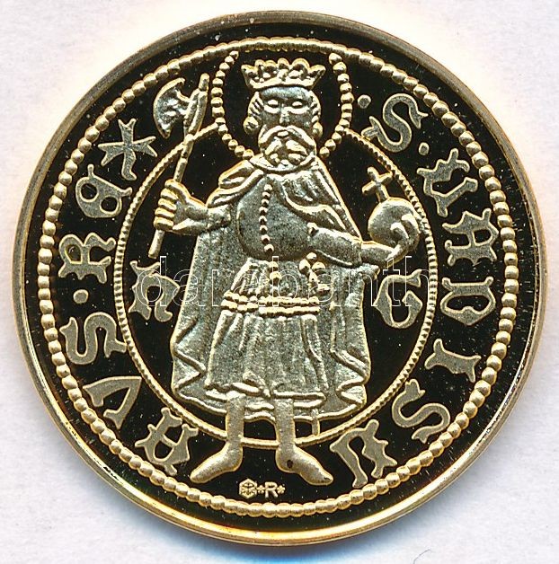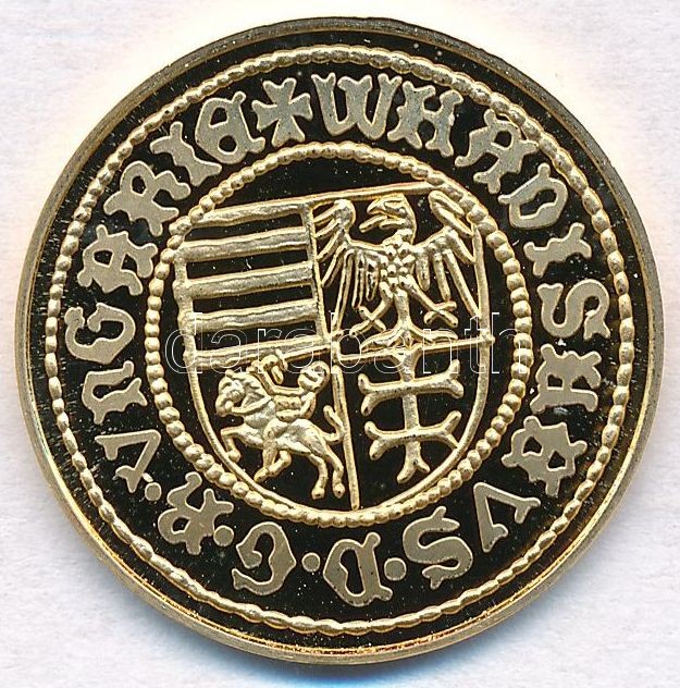 Beschreibung: DN "Magyar aranypénzek utánveretben - I. Ulászló aranyforint" aranyozott Ag emlékérem tanúsítvánnyal (5,5g/0.333/25mm) T:PP