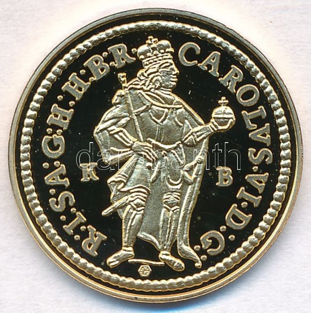 Beschreibung: DN "Magyar aranypénzek utánveretben - III. Károly dukát 1730" aranyozott Ag emlékérem tanúsítvánnyal (5,5g/0.999/25mm) T:PP
