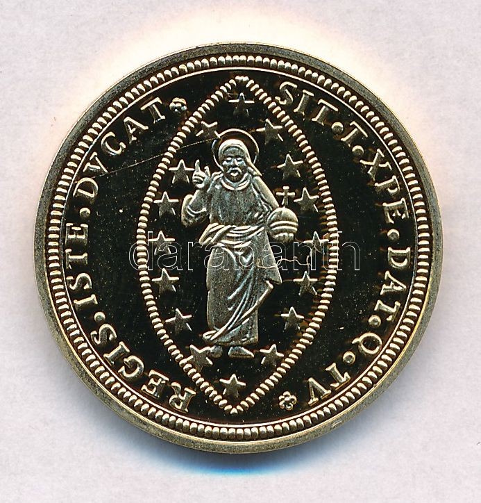 Beschreibung: DN "Történelmi aranypénzek - IV. Alvise Giovanni Mocenigo 50 zecchini, 1763-1778" aranyozott Ag utánveret "COPY" beütéssel, tanúsítvánnyal (10,1g/0.999/25mm) T:PP