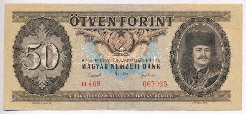Adamo F18 https://www.darabanth.com/de/319-Fernauktion/319.0/Numismatik/Ungarische-Banknoten~2000007/1951-50Ft-TIII-szep-papir--Adamo-F18~II1752352
