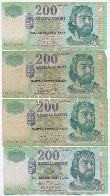 Beschreibung: 1998. 200Ft "FA" + 200Ft "FF" + 2001. 200Ft "FE" + 2003. 200Ft "FB" T:III,III-