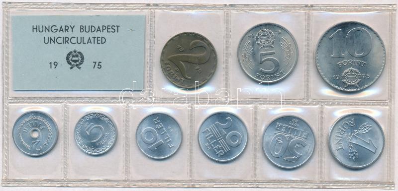 1975. 2f-10Ft (9xklf) érmés forgalmi sor fóliatokban T:1 Adamo FO8 https://www.darabanth.com/de/319-Fernauktion/319.0/Numismatik/Ungarische-Kursmunzsatze~2000010/1975-2f-10Ft-9xklf-ermes-forgalmi-sor-foliatokban-T1-Adamo-FO8~II1762715