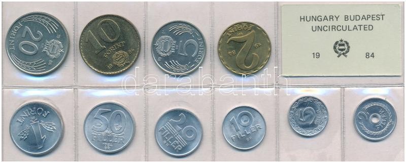 1984. 2f-20Ft (10xklf) érmés forgalmi sor fóliatokban T:1 Adamo FO17 https://www.darabanth.com/de/319-Fernauktion/319.0/Numismatik/Ungarische-Kursmunzsatze~2000010/1984-2f-20Ft-10xklf-ermes-forgalmi-sor-foliatokban-T1-Adamo-FO17~II1762943