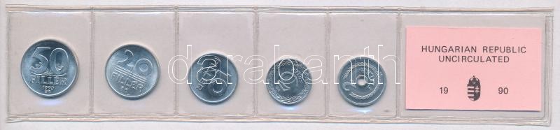 1990. 2f-50f (5xklf) forgalmi sor fóliatokban T:1 https://www.darabanth.com/de/319-Fernauktion/319.0/Numismatik/Ungarische-Kursmunzsatze~2000010/1990-2f-50f-5xklf-forgalmi-sor-foliatokban-T1~II1764450