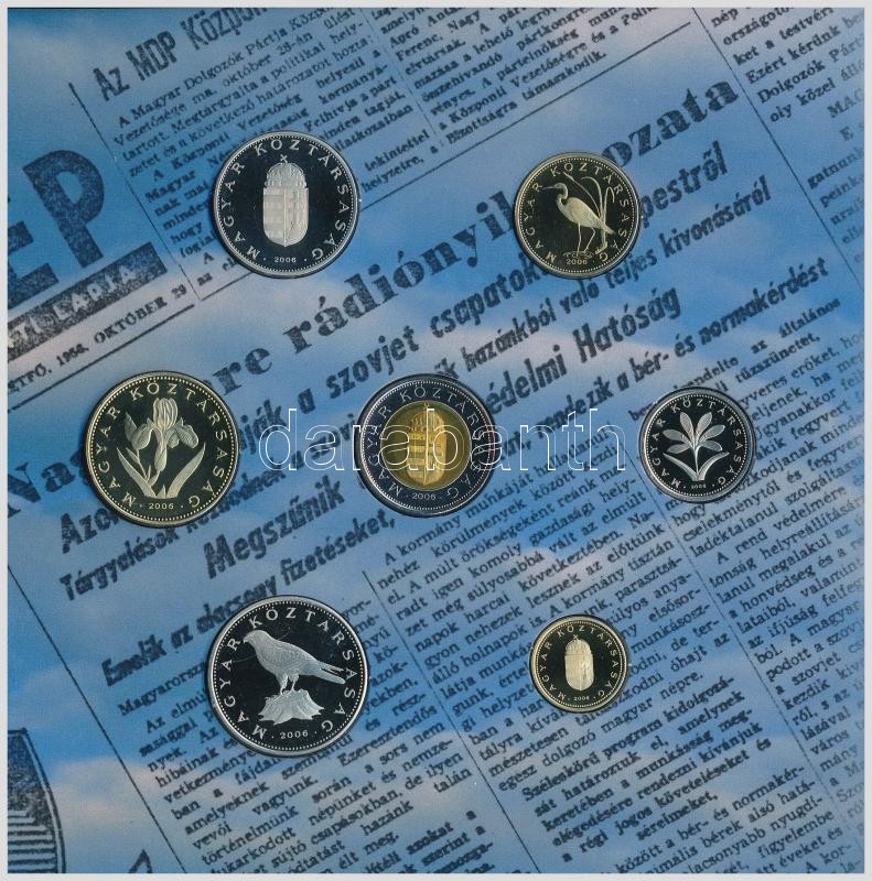 2006. 1Ft-100Ft (7xklf) "1956-os forradalom" forgalmi sor ka... https://www.darabanth.com/de/319-Fernauktion/319.0/Numismatik/Ungarische-Kursmunzsatze~2000010/2006-1Ft-100Ft-7xklf-1956-os-forradalom-forgalmi-sor-karton-disztokban-TPP--Adamo-FO401~II1744116