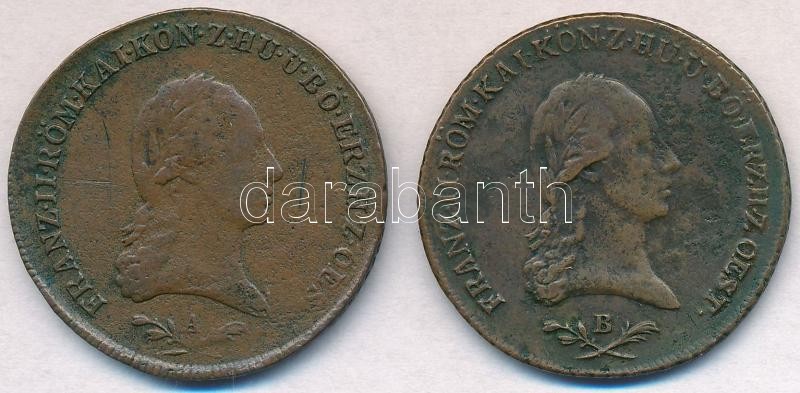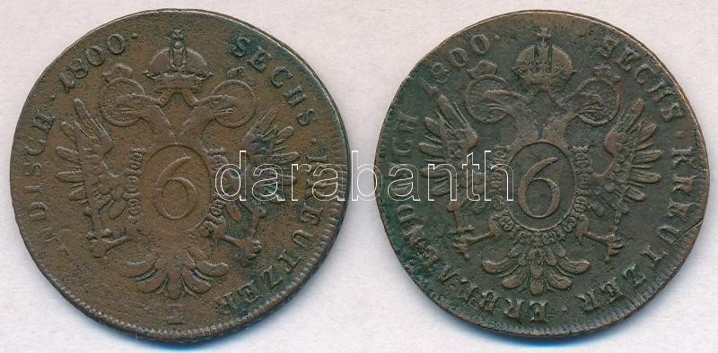 1800B 6kr Cu + Ausztria 1800A 6kr Cu "I. Ferenc" T:2- https://www.darabanth.com/de/319-Fernauktion/319.0/Numismatik/Ungarische-Munzen-und-Munzen-mit-ungarischem-Munzzeichen~2000009/1800B-6kr-Cu-plus-Ausztria-1800A-6kr-Cu-I-Ferenc-T2-~II1744532