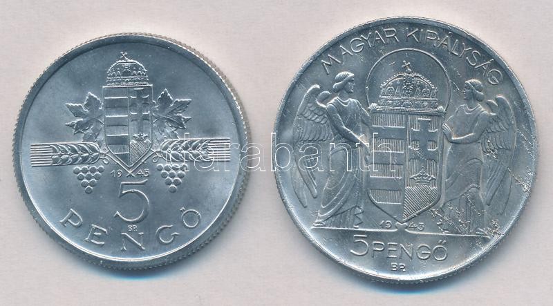 1943-1945. 5P Al (2xklf) T:1- anyagfelesleg https://www.darabanth.com/de/319-Fernauktion/319.0/Numismatik/Ungarische-Munzen-und-Munzen-mit-ungarischem-Munzzeichen~2000009/1943-1945-5P-Al-2xklf-T1-anyagfelesleg~II1764620