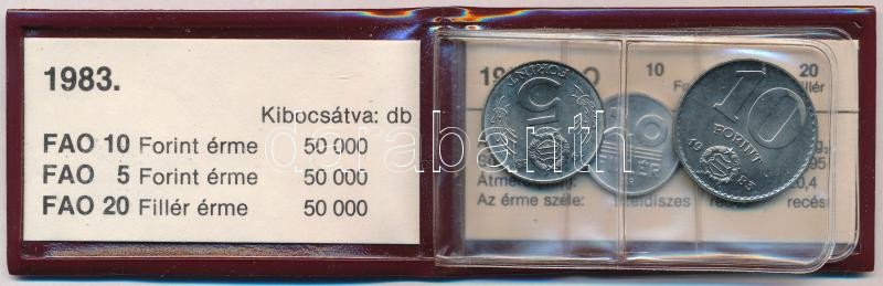 1983. 20f Al + 5Ft Ni + 10Ft Ni "FAO" sor, eredeti tokban ta... https://www.darabanth.com/de/319-Fernauktion/319.0/Numismatik/Ungarische-Munzen-und-Munzen-mit-ungarischem-Munzzeichen~2000009/1983-20f-Al-plus-5Ft-Ni-plus-10Ft-Ni-FAO-sor-eredeti-tokban-tanusitvannyal-TBU---Adamo-EM69-EM70-~II1763277