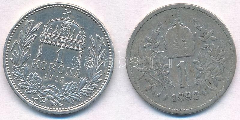 Beschreibung: Vegyes: 1915KB 1K Ag + Ausztria 1893. 1K Ag "Ferenc József" T:1-,2-,3