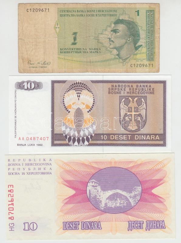Bosnia and Herzegovina 1992. 10 Dinara (2xdiff) + 25 Dinara + 1000 Dinara + 1998. 1 Marka C:UNC,F