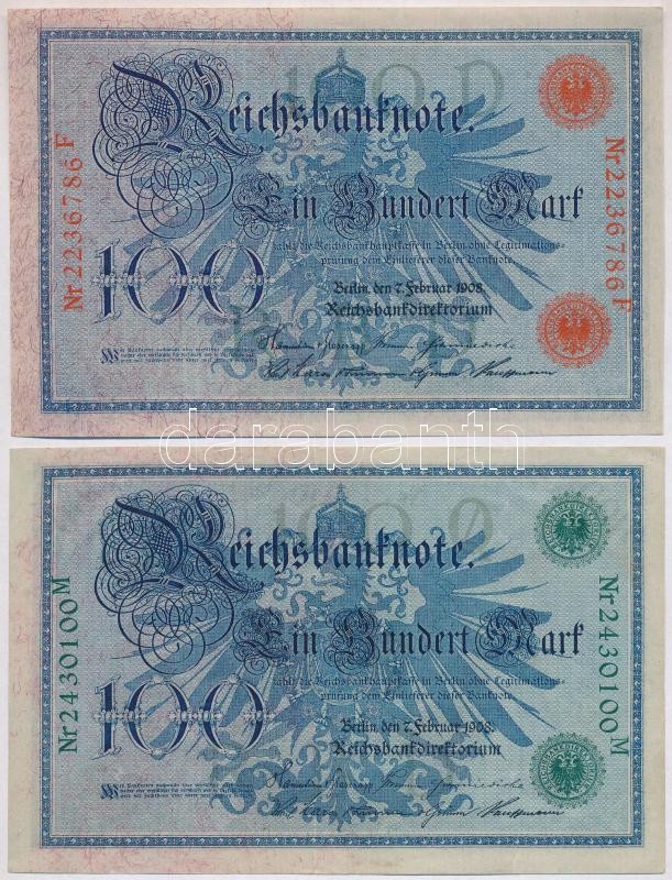 German Empire 1908. 100 Mark (2xdiff) red and green seal C:XF,F