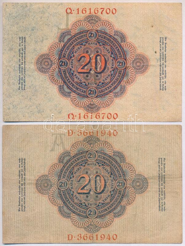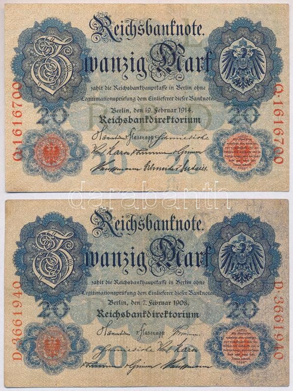 German Empire 1908-1914.... https://www.darabanth.com/de/319-Fernauktion/319.0/Numismatik/Weltweit-Banknoten~2000014/Nemet-Birodalom-1908-1914-20M-2xklf-TIII-German-Empire-1908-1914-20-Mark-2xdiff-CF~II1758524