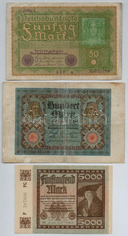 Német Birodalom / Weimari Köztársaság 1914-1923. 8db klf bankjegy T:II... https://www.darabanth.com/de/319-Fernauktion/319.0/Numismatik/Weltweit-Banknoten~2000014/Nemet-Birodalom-Weimari-Koztarsasag-1914-1923-8db-klf-bankjegy-TII-III-German-Empire-Weim~II1758507
