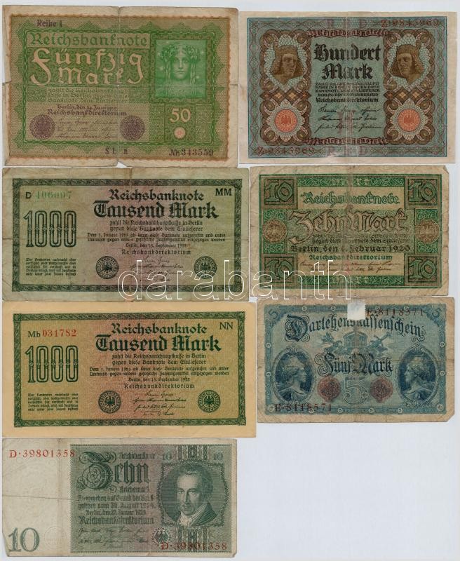 Német Birodalom / Weimari Köztársaság 1914-1929. 7db klf bankjegy, közte 1914. 5M T:III,III- közte ragasztott