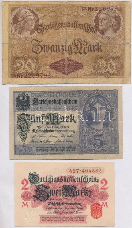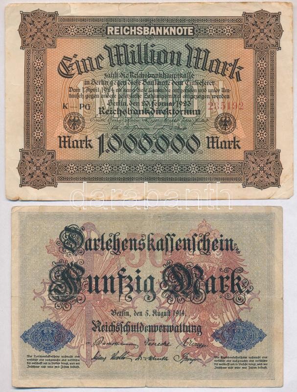 Német Birodalom / Weimari Köztársaság 1914. 2M + 20M + 50M + 1917. 5M + 1923. 1.000.000M T:III,III-