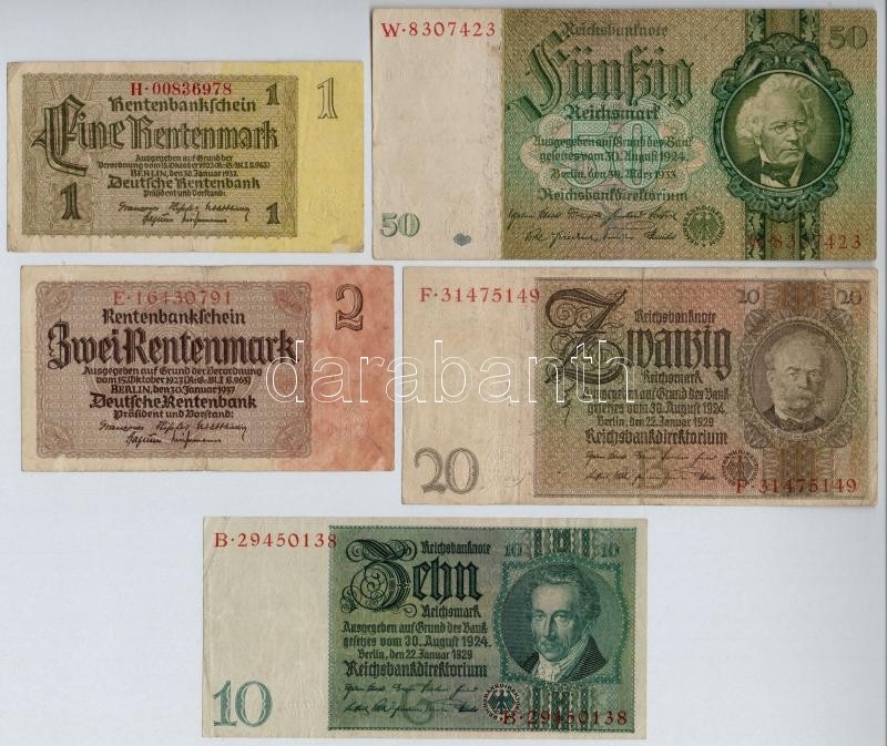 Németország / Weimari Köztársaság 1929. 10M + 20M + Német Harmadik Birodalom 1933. 50M + 1937. 1M + 2M T:III