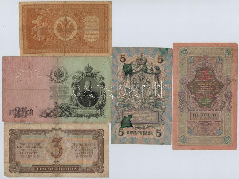 Beschreibung: Orosz Birodalom 1909-1912. (1909) 25R Szign.: Konshin + 1912-1917. (1898) 1R + (1909) 5R + 10R Szign.: Shipov + Szovjetunió 1937. 3Ch T:III,III-