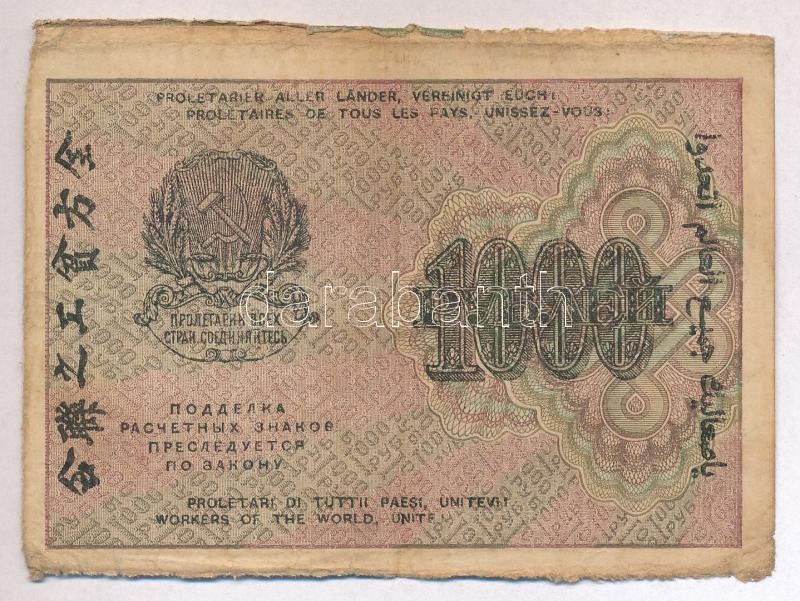 Russian... https://www.darabanth.com/de/319-Fernauktion/319.0/Numismatik/Weltweit-Banknoten~2000014/Szocialista-Szovetsegi-Szovjet-Koztarsasag-1919-1000R-TIII---Russian-Socialist-Federated-Sovi~II1759138
