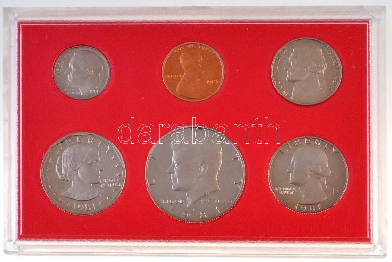 Beschreibung: Amerikai Egyesült Államok 1981S 1d-1$ (6xklf) dísztokos szettben T:PP USA 1981S 1 Dime - 1 Dollar (6xdiff) set in original case C:PP
