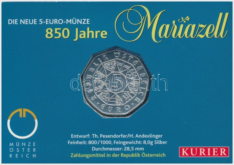 Austria 2007. 5 Euro Ag "850th Anniversary of Mariazell" in original packing C:BU