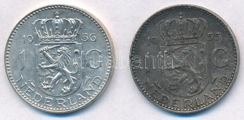 Hollandia 1955-1956. 1G Ag "I. Julianna" (2x) T:1-,2 patina Netherlands 1955-1956. 1 Gulden Ag "Juliana" (2x) C:AU,XF patina