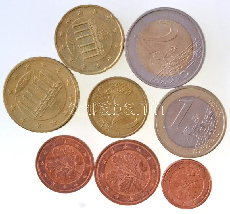 Germany 2002... https://www.darabanth.com/de/319-Fernauktion/319.0/Numismatik/Weltweit-Munzen~2000015/Nemetorszag-2002-2004-1c-2E-8xklf-forgalmi-sor-T1-2--Germany-2002-2004-1-Cent--2-Euro-8xdi~II1761668