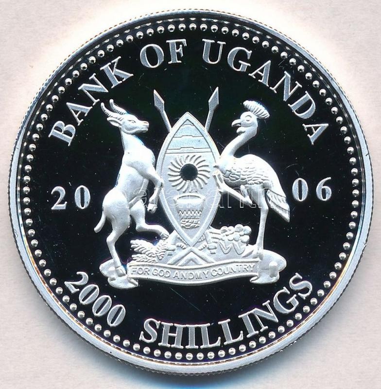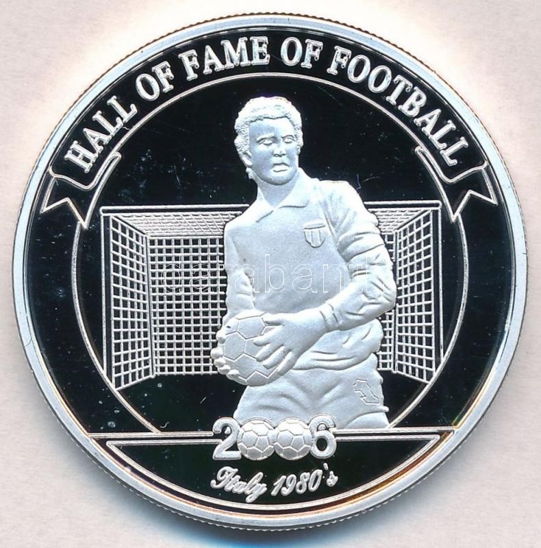 Uganda 2006. 2000Sh Ag "A labdarúgás halhatatlanjainak csarnoka - Olaszország 1980-as évek / Dino Zoff" T:PP fo. Uganda 2006. 2000 Shillings Ag "Hall of Fame of football - Italy 1980s / Dino Zoff" C:PP spotted