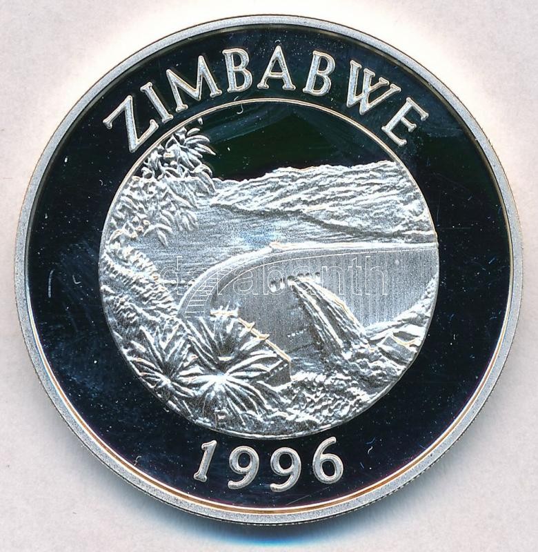 Beschreibung: Zimbabwe 1996. 10$ Ag "Elefánt / Viktória-vízesés híd" T:PP