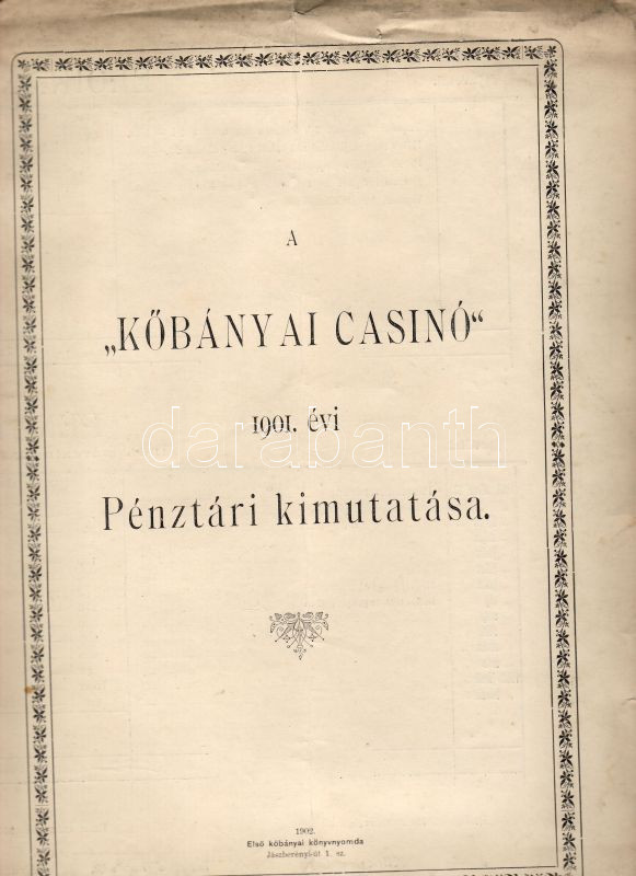 1902 A Kőbányai Casino pénztári kimutatása https://www.darabanth.com/de/32-Fernauktion/32.0/Andere-Sammelgebiete/~153/1902-A-Kobanyai-Casino-penztari-kimutatasa~II63332