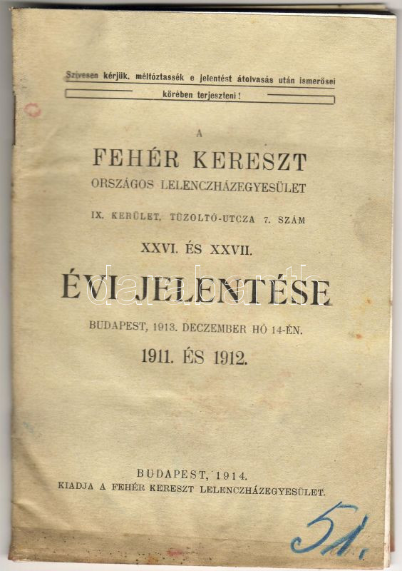1914 A Fehér Kereszt orsz. lelencházegyesület évi jelentése https://www.darabanth.com/de/32-Fernauktion/32.0/Andere-Sammelgebiete/~153/1914-A-Feher-Kereszt-orsz-lelenchazegyesulet-evi-jelentese~II63263