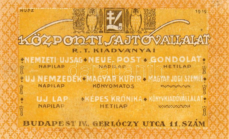 Beschreibung: 1919. Központi Sajtóvállalat RT. 20f T:I