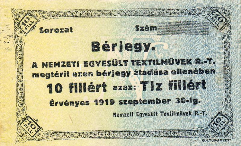 1919. Nemzeti Egyesült Textilművek R.T. 10f Sorozat és sorszám nélkül!... https://www.darabanth.com/de/32-Fernauktion/32.0/Numismatik/~156/1919-Nemzeti-Egyesult-Textilmuvek-RT-10f-Sorozat-es-sorszam-nelkul-RRR-TI~II63717
