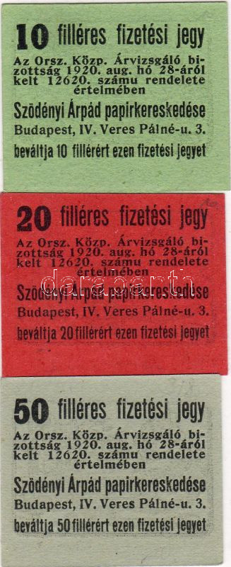 1920. "Szödényi papírkereskedés" 10f, 20f, 50f T:I https://www.darabanth.com/de/32-Fernauktion/32.0/Numismatik/~156/1920-Szodenyi-papirkereskedes-10f-20f-50f-TI~II63722