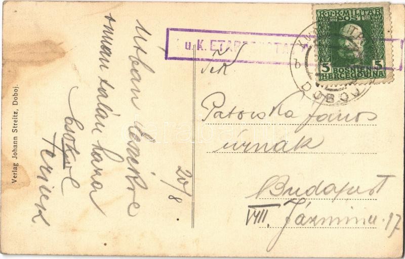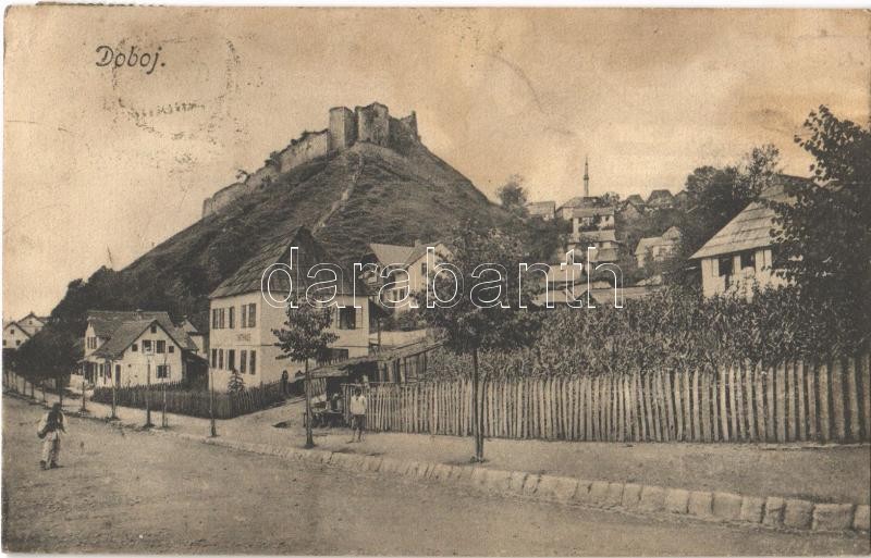 Doboj, street view with shops, castle (r) https://www.darabanth.com/de/32-Gross-Auktion/32.1/Ansichtskarten/Bosnien-und-Herzegowina~13743/Doboj-street-view-with-shops-castle-r~II2046657